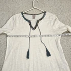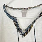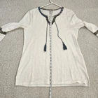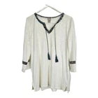 Chicos 1 US 8/10 Medium Tunic Off White Cream Tassels Lightweight Thin Boho Casual Beach Vacation Paisley Trim Good preowned condition