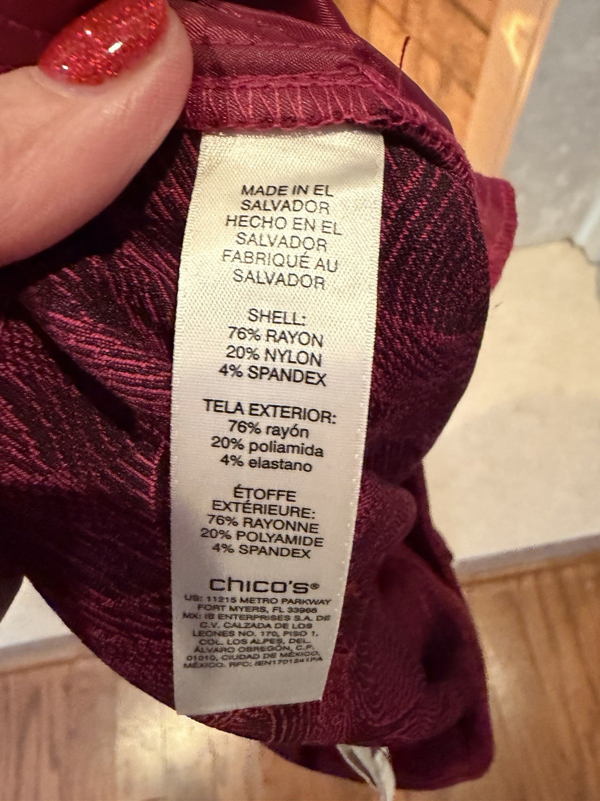 Perfect Stretch By Chico’s ankle pants size 2.5 in like new condition. Gorgeous pattern. 18.5in across front of waist lying flat unstretched 26in inseam 🦋Smoke free home. L286