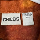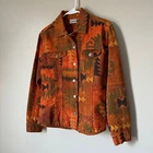 Chicos Jacket Womens SMALL Southwest Western Aztec Cowgirl Boho Cotton Orange Button Front. 100% cotton. Size: Chico's size 1/SMALL Approx. measurements: 20" across (pit to pit), 24" long (shoulder to hem) Condition: Pre-loved and in gently used condition. Light wear. no stains, rips, or holes. - see all pics for any wear/condition Actual colors may vary. We do our best to ensure that our photos are as true to color as possible. However, due to photographic lighting sources, inconsistencies of various monitors settings, we cannot guarantee that the color you see accurately portrays the true color of the product. boho, bohemian, southwest, western, cowgirl, aztec, tribal,