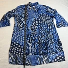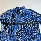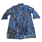 Chico's Leopard Print Semi Sheer Button Up Shirt Tunic Size L/12 Colorful CONDITION: Pre-Owned. Excellent Used Condition. FLAWS/ALTERATIONS: No flaws. COLOR: Blue/White SIZE: Women’s Size Large/12 (Chico's size 2) DETAILS: Collar Semi sheer Leopard print Roll tab sleeve Button up Tunic length 3/4 sleeve High low hem MEASUREMENTS: Chest: 22" Front Length: 30" Back Length: 34" **All measurements are approximate and are taken flat** MATERIAL: 100% Polyester Bundle 2 OR MORE items to save more! Reasonable offers are welcomed! TAGS: Casual Comfy Spring Summer Maximalist Colorful Multicolor Abstract Vibrant Classic Staple Festival Party
