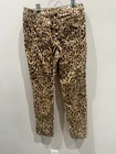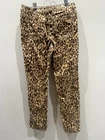 Chico's Pants Animal Print Leopard Pants Size 1 Soft are a pair of women's ankle pants made of a knit fabric blend of spandex and cotton. They have a high rise and a tapered leg style. The pants feature a button and zip closure, with studded accents and an animal print pattern. They are machine washable and have stretch and slimming features. The pants are suitable for travel, party/cocktail, or casual occasions and are available in a size 1. The brand is Chico's and they are made in Vietnam. Waist size is 34”, length 40”, and inseam 30”.