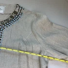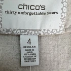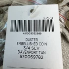 Chico's NEW Linen Embellished Open Front 3/4 Sleeve Duster Blazer Size (4) XXL New with tags - see pics for provided measurements. There is a clasp at the neck, no other buttons. Open front. Davenport tan in color. 100% linen #linen #resortwear #casual #businesscasual #travel Elegant Chico's jacket with decorative blue and brown accents. Perfect for stylish layering.