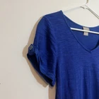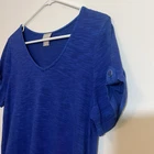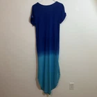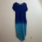 Chicos Maxi Dress Size 1 (Small) Blue Teal Ombre Fade Roll Tab Sleeves Cotton