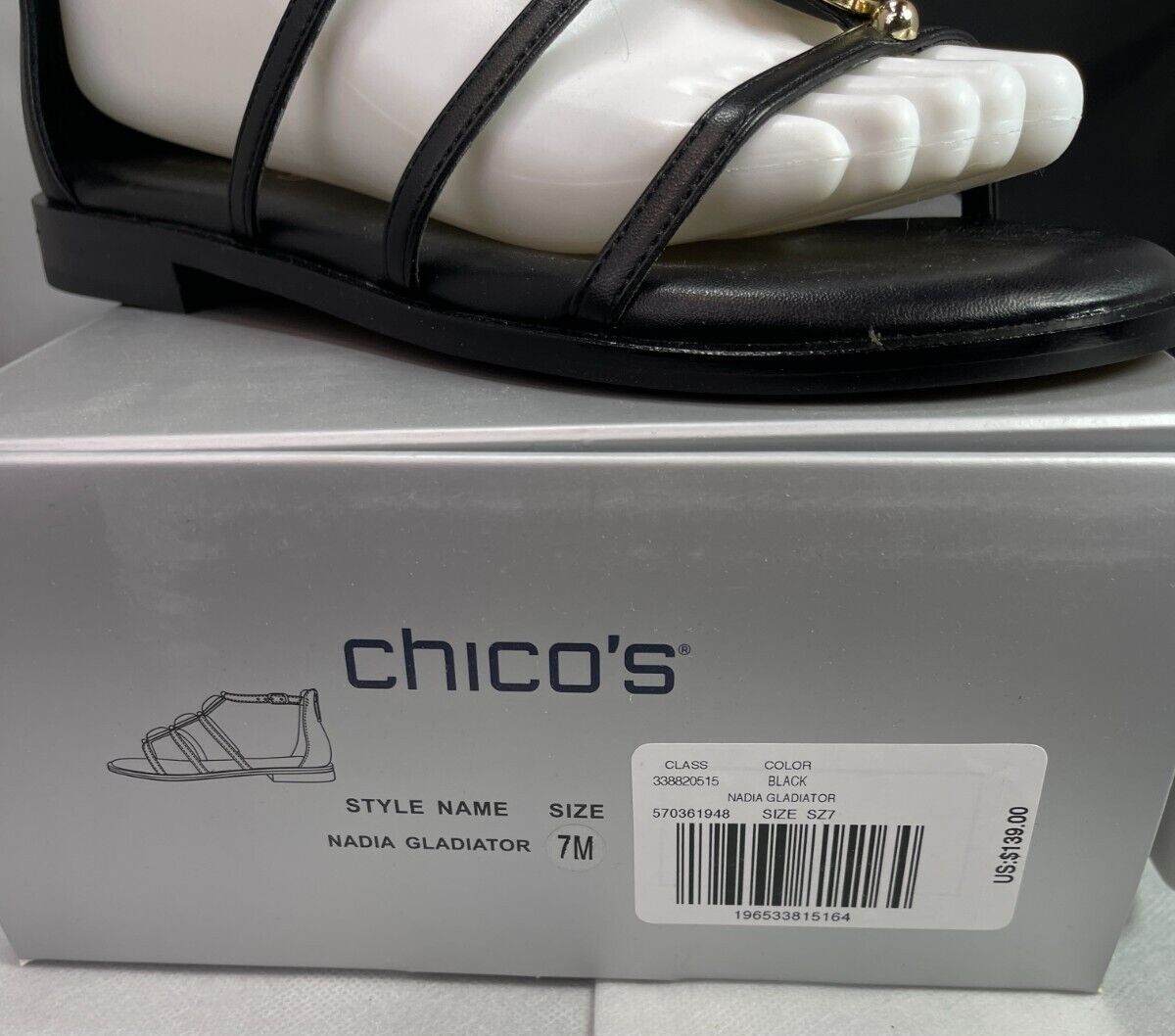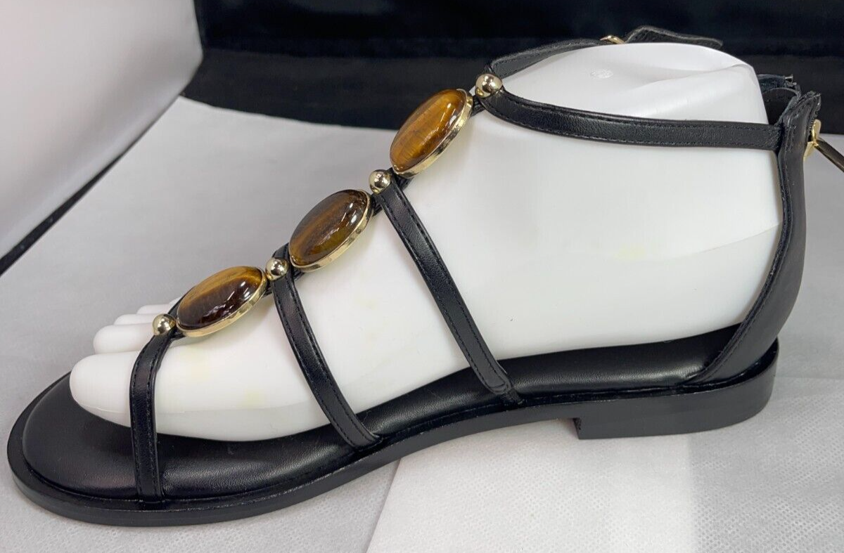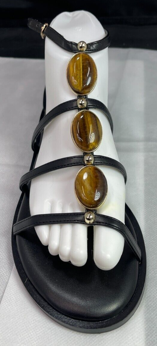 Chico's Nadia Gladiator Beaded Black Leather Sandal 7M Brand: Chico’s Overall Condition: New in box. See pictures for details. Materials: Leather and rubber. Shipped with USPS Priority, Flat Rate or, when possible, First Class Mail. The new Gladiator Sandals champion style and comfort. Featuring an oval, iridescent, gold tone accent on the pu nappa upper, these sandals are designed with a wrap-around-the-ankle detail. Crafted with a gold tone studded welt design for extra shine, these sandals add character to crops and dresses. Gladiator sandals with adjustable buckle strap. Soft, breathable synthetic lining & fabric lining. Memory foam sock padding for all day comfort. Inside elastic gore for adjustable fit. Height: .75" heel with flexible slip-resistant outsole. 78% leather, 20% plastic, 2% metal. Imported. Details for Shopper Size: 7 Shoes Width: M Heel Height: 1 inches Heel Type: flat Toe Style: open round Toe Payment Policies We accept payment through PayPal, credit card, and debit card. Please note that the item may be relisted if payment is not received within the 10 day period. Shipping Policies Delivery estimates will be displayed at checkout. In-store pickup is also available if you would like to visit us in store. We ship to Continental United States only. Terms of Sale Each item we sell is unique. There are no exchanges for the same item available. All items are carefully inspected by My Sister’s Closet of Monroe County’s quality control team prior to shipping. Please carefully review item details. If you have questions, please message us regarding the item before purchasing. Note: Due to the different monitor and light effects, the actual color of the item shown might be slightly different from the color in pictures. Return Policy We strive to describe and measure our items accurately. If your order is not what you expected, we accept returns under the following conditions: The item was not as described as listed The wrong item was shipped. The item does not fit. If the wrong item was shipped, we will attempt to replace it with the item originally ordered. Please note - items not returned in the exact same condition, with tags attached, may be subject to a partial refund to account for loss of the item’s value. Please refer to eBay Return policy for more details. You are covered by the eBay Money Back Guarantee if you receive an item that is not described as listed. Return Requirements: The buyer must return the item within 30 days of receipt. Buyer is responsible for return shipping charges. The item(s) must be returned in the original condition, unworn, with tags attached. Thank you for shopping with us! A little bit more about us… My Sister’s Closet is a nonprofit serving women in poverty since 1998. Our mission is to help women move closer to economic self-sufficiency by providing essential career development tools. This includes job training, mentoring, advocacy services, and professional attire for job interviews to help them find employment. We have helped over 2500 women thus far. Most clients we serve have been dealing with homelessness, domestic violence, illness, divorce, job loss, economic recovery and/or lack basic education. Visit Our eBay Store