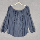Chicos Peasant Top Small Embroidered Sequin Chambray Cotton Boho Cottage Sparkle Blouse Blue Balloon Puff Long Sleeve Off The Shoulder Western Cowgirl Rodeo Feminine Romantic Mediterranean Loose Flowy Beach Vacation Resort Coastal Cruise EXCELLENT Pre-owned condition: minimal to no signs of wear, no stains or holes SKU 8366 **Please see all pictures for full item condition and details** - Ships Same/Next Day, Professional Seller, Offers Welcome, Like or watch for price drops - Item in photos is exact item you will receive - I list new items daily, be sure to browse my store/closet for more items - Bundle pricing and combined shipping available for additional savings - Feel free to send a message