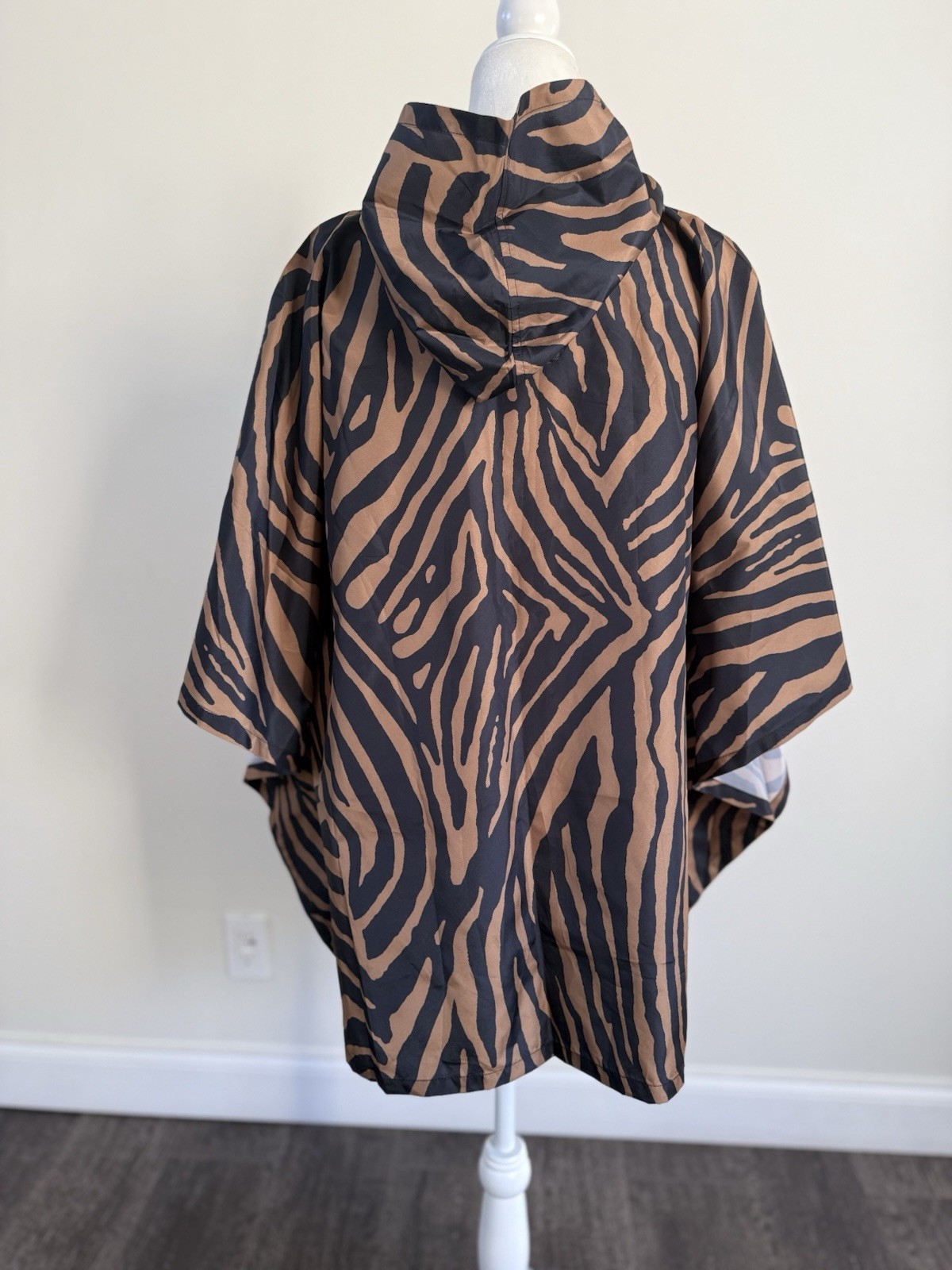 The Chico's Poncho is a stylish and versatile women's hooded cape windbreaker in brown and black animal print. Made with nylon outer shell and polyester lining, this mid-length jacket features short sleeves and a relaxed fit. Perfect for travel or casual occasions, this lightweight poncho is ideal for all seasons and includes pockets for added convenience. With a hood for extra protection and a trendy leopard theme, this Chico's Poncho is a fashionable and functional addition to any wardrobe. Condition is New without tag. Shipped asap by USPS ground advantage mail.