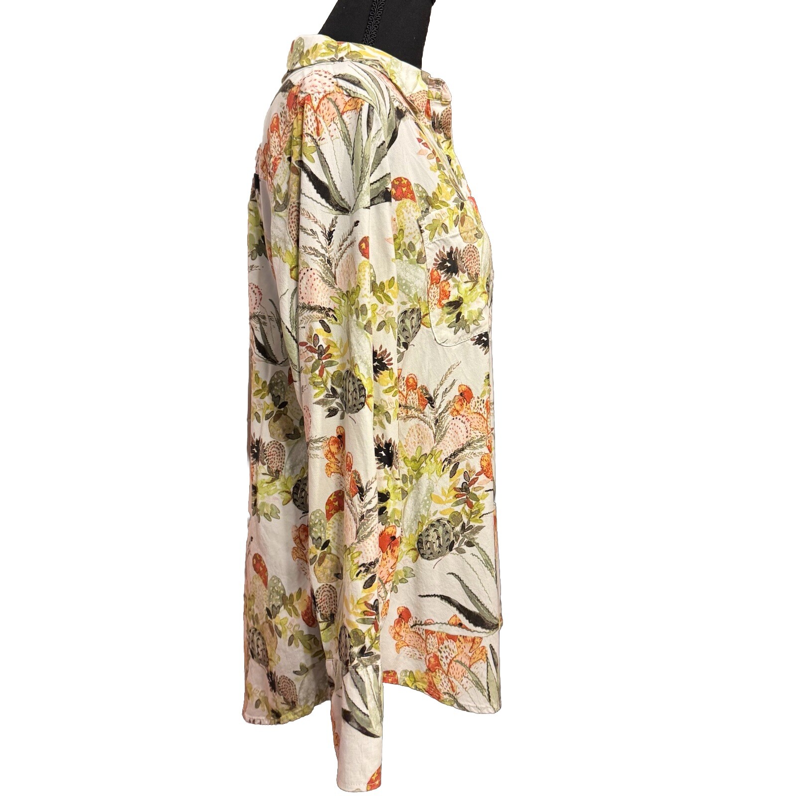 Chicos Blouse Sz 8/10 Womens Cactus Botanical Soft Button Up Shirt Top Flowy. Condition is Pre-owned. Shipped with USPS Ground Advantage.