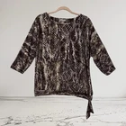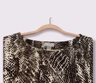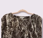 Chico’s Travelers Slinky Stretch Knit Animal Print Top Gorgeous Brown Animal Print Chico’s Size 1 Women’s Size Medium 8 Armpit to armpit is approximately 23 inches Top to bottom is approximately 25 inches Comfy Slinky Stretch Material Relaxed Fit Dolman Sleeves Side Tie Hem Super Chic ! Can easily be Dressed Up or Down for any occasion all year round. Make sure to Compare Measurements to items you already own & love to ensure a Good Fit before placing an order & for best buying experience ! We Ship out all purchases within 1 business day of payment. Automatic $10 flat Rate Combined Shipping on all items added to cart & paid for together in 1 order. 30 day Free Returns just in case you don’t Love it ! Happy Shopping 😊