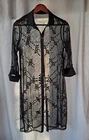 Chicos Whimsigoth Mesh Embroidered Collared Button Front Duster Tunic Small The original tag has been removed, but this appears to be a size small, check measurements below to be sure of fit. Witchy / whimsigoth Shoulders - 15in Chest - 19in Sleeve - 18.75in Length - 39in