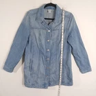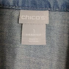 Crafted for versatility and comfort, this Chico's women's denim jacket is a staple for any wardrobe. Its lightweight design, combining linen and cotton, ensures breathability and ease of movement. With a size 1 (equivalent to 8/10), it offers a regular fit that flatters without sacrificing comfort. The classic blue hue and solid pattern make it a breeze to pair with any outfit, while the long sleeves and collared neckline add a touch of sophistication to the casual button-front style. Perfect for an array of occasions, from casual outings to travel, or adding a layer of refinement to workwear, this jacket has you covered through all seasons. The thoughtful features include convenient pockets and the ease of machine washability, ensuring that style and maintenance go hand in hand. Whether you're embracing the Western theme or simply seeking a reliable, timeless piece, this blouse will keep you looking sharp and feeling great. ● Photos show the most important measurements to ensure a perfect fit! Don't miss out on this beautiful piece in perfect condition. It's practically new! For any questions, we are just a message away. ● Because we offer hassle-free returns, you can buy with complete confidence. Plus, we process orders at lightning speed and keep you informed with tracking details. Experience a seamless and secure purchase. Shipping Under normal circumstances, we try to ship all orders within three business days of payment, normally sooner. We use a selection of shipping services such as TBA, UPS, FedEx, USPS, etc. We only ship to the lower 48 states. We do not ship to Alaska/Hawaii, US Protectorates, Puerto Rico, and PO Boxes. Local pickups and combined shipping options are not available at this time. FREE SHIPPING Returns Although we strive for 100% order fulfillment accuracy, mistakes happen. Please allow us the opportunity to correct any error before leaving us negative feedback. We are confident in our products, but if you are not fully satisfied with your order, don't hesitate to get in touch with us within 30 days of purchase, and we will send you a return label. Once the item is returned, we will issue you a full refund. The product must be returned in the original item's box and in the same condition as you received it. 30 DAYS Payment We accept payment only on eBay Payments (We accept all kinds of credit cards). Please pay as soon as possible after winning an auction; this will allow us to ship your item sooner!