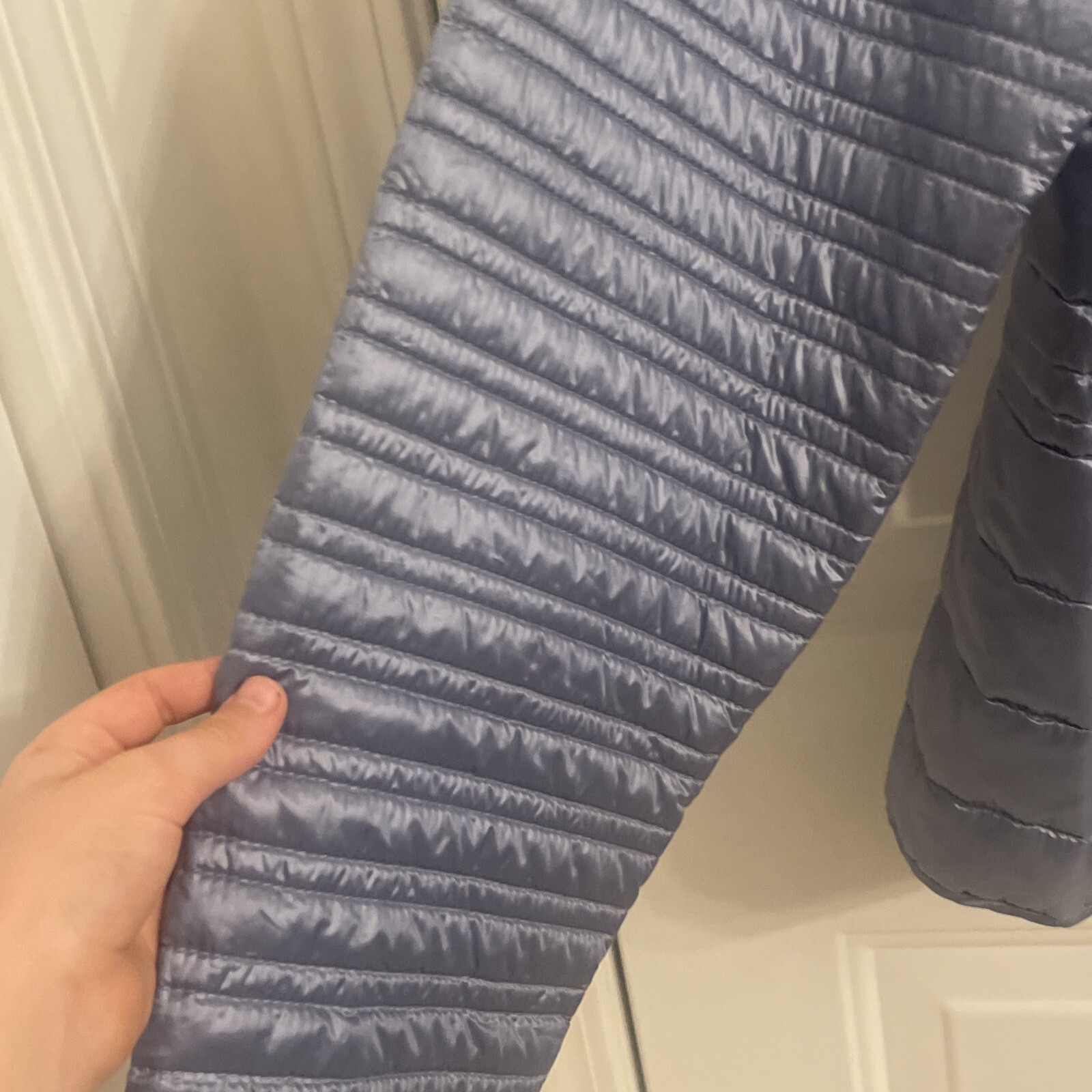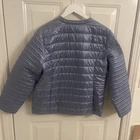 The Chico's Women's Lightweight Quilted Puffer Jacket in blue, size 2, is a versatile and stylish outerwear piece perfect for travel. Made from a blend of polyester, nylon, cotton, and spandex, this jacket offers both durability and comfort. The quilted design adds a touch of elegance, while the lightweight construction ensures easy movement. With a polyester lining and basic jacket style, this piece is a must-have for any woman looking for a practical and fashionable winter essential.