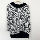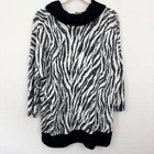 Brand: Chico's Size: Brand size 2 equals Large/12 Measurements: Please see last photo for approximate measurements. Condition: In excellent pre-loved condition. Color: Black, white Material: Rayon, poly, spandex Features: Pullover style Cowl neck Soft fabric with a touch of stretch-almost sweater like Drop shoulder, half sleeve Style: animal print, comfy, cozy, casual, lounge, loungewear, relax, relaxed, stay at home, chill, loose, easy, weekend wear, homey, soft, comfort, soothing, snuggle, lazy, chill, comforting, casual Friday