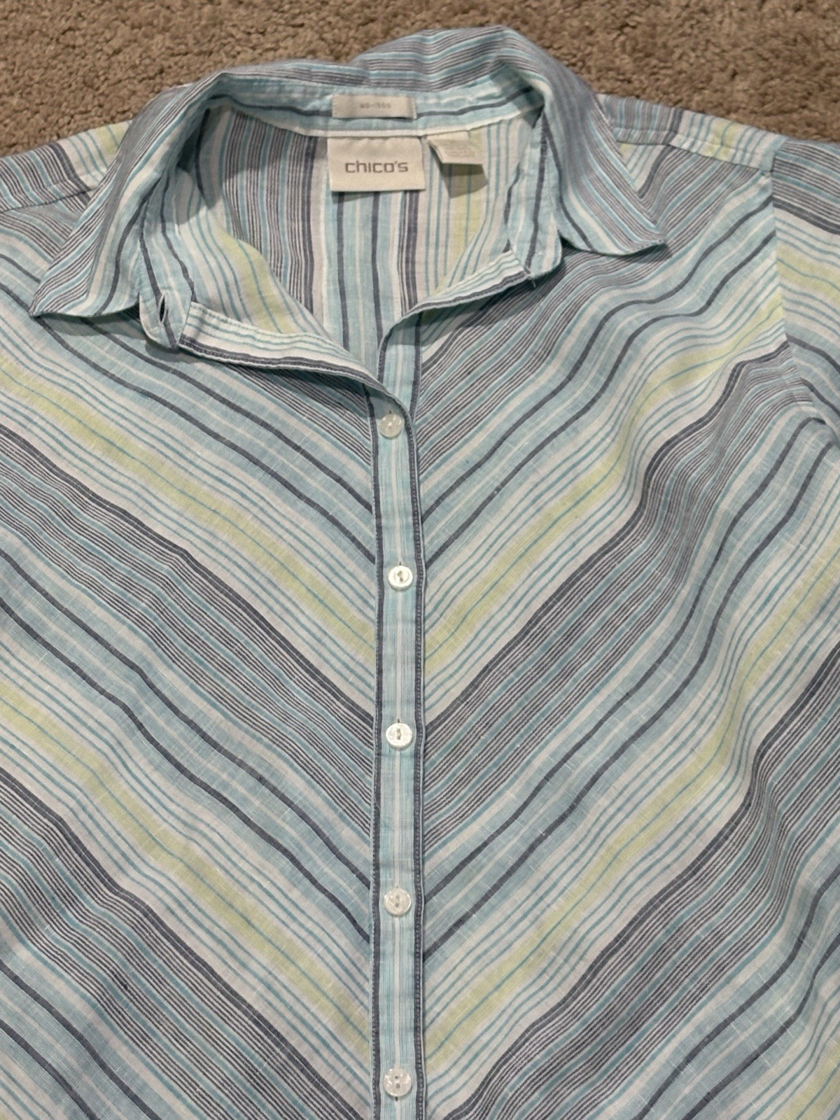 Clothing Description: Item is a pre-owned Chico's women's shirt in good condition. Items are carefully inspected and sealed after photos. We cannot check additional measurements or details for you. Please note, item measurements are approximate and in the photos. Previous washings may change the sizing. Please compare our measurement photos to your favorite garments to ensure fit. Colors remain vivid, we store our items in a smoke free environment If the item is pre-owned, it's cleaned per eBay standards. We do not use any freshener or scents. Shipping and Return Details We ship daily so that you receive your item quickly. We have a 30 day return policy. Please let me know if you are interested in combine shipping for multiple purchases. Please feel free to ask any questions you may and we will try our best to answer as quickly as possible.