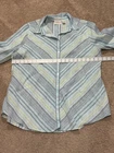 $ 10.04Express Women’s White w/Blue & Black Striped Button Down Shirt Rolled Sleeve S