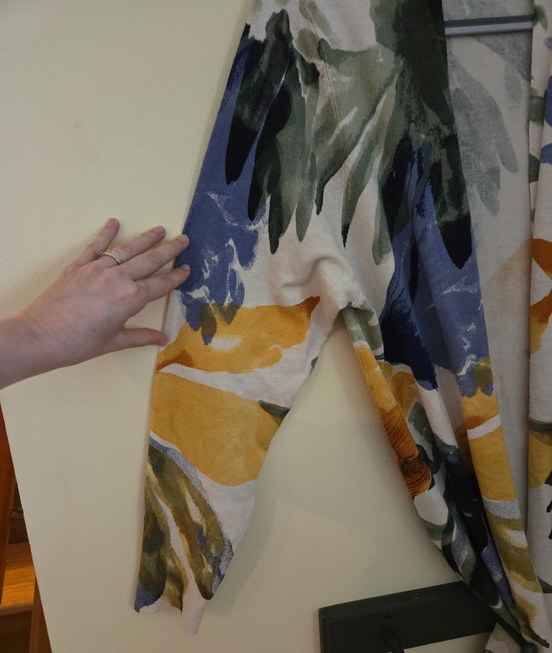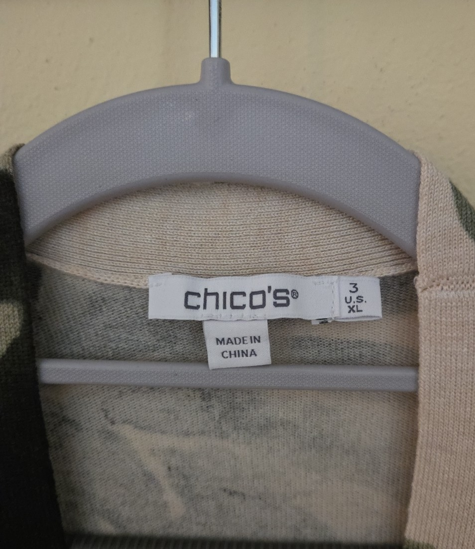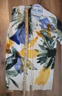 Chico's Cardigan/Duster/Sweater in a Size 3 (XL) Beautiful Floral Tropical design in Yellow & Blue Material is a knit, thin weight in a blend of rayon and nylon Good condition, no stains. See photos for description, condition details, and approximate measurements
