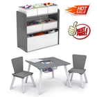 You may also like Kids Outdoor Picnic Table with Umbrella Blue & Green Play Table with Umbrella 100.11 USD 105.38 USD Free shipping 5% off Complete your child?s playroom or bedroom with this 4-Piece Toddler Playroom Set. Vibrant and playful, this set includes a wooden play table with storage in the middle, two coordinating chairs and a multi-bin toy organizer. All items are at the perfect kid-sized height to help teach your little one responsibility and independence as they play, eat and clean up on their own. The adorable two-tone design ensures your little one?s playroom is a stylish and charming as the rest of your home. Ideal for both boys and girls, this kids? playroom set comes in two colors, Grey/White and Pink/White. Get it today--the play possibilities are endless with this versatile set! Recommended for ages 3+. it was founded around the idea of making safe, high-quality children's furniture affordable for all families. They know there's nothing more important than safety when it comes to your child's space. That's why all Children products are built with long-lasting materials to ensure they stand up to years of jumping and playing. Plus, they are rigorously tested to meet or exceed all industry safety standards. Table and Chair Set with Storage: Table features handy toy keep in the center for easy storage Each chair holds up to 50 lbs. This set features fun and colorful two-tone design Made of engineered wood and solid wood | Scratch-resistant finish protects the table's colorful graphics Assembled dimensions: 24"L x 24"W x 17.72"H | Easy assembly Multi-Bin Toy Organizer: Multi-Bin Toy Organizer features 6 bins in varying sizes to fit a wide variety of toys Colorful, two-tone design will help encourage your child to keep their space neat and tidy Made of engineered wood, solid wood and fabric Bin meets or exceeds all safety standards set by the CPSC Assembled dimensions: 24.61?L x 11.81?W x 26.57?H | Easy assembly