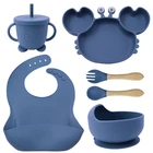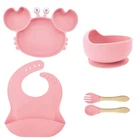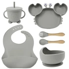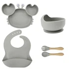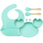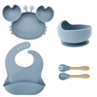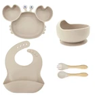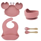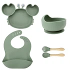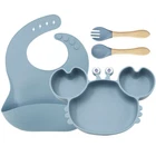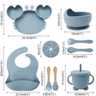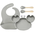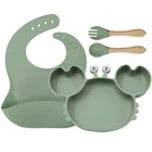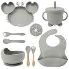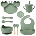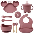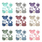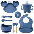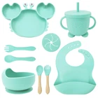 [Product Name]: Children's Tableware Set [Material]: Food-grade Silicone [Temperature resistance]: -30° +220° [Packaging]: OPP bag [Color]: 9 colors [Product Weight]: 735g This nine-piece set of children's silicone tableware is specially designed for babies, including dinner plates, supplementary food bowls, silicone spoons, forks and other accessories, which is an ideal choice for feeding babies. First of all, the tableware is made of food-grade silicone material, which does not contain bisphenol A (BPA), which is safe, odorless, and resistant to high temperature. It can be boiled and disinfected at high temperature to ensure the safety and health of the baby. Secondly, the design of the dinner plate is non-slip and drop-resistant, which is suitable for different surfaces to avoid the baby's tableware slipping during the meal. In addition, the spoons and forks in the tableware set are made of soft silicone material, which can not only protect the baby's delicate mouth, but also have good flexibility and elasticity, which is convenient for the baby to chew and eat. The cartoon image design on the dinner plate can attract the baby's attention and stimulate their interest in eating. Overall, this nine-piece tableware set is not only practical, but also beautiful and cute, which is very suitable for family use or as a gift for newborn families. It not only simplifies the feeding process for parents, but also provides a safe and comfortable dining experience for babies.