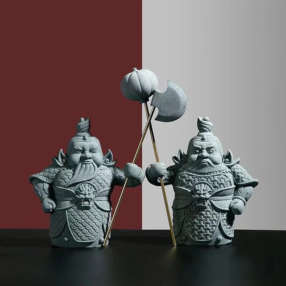 2-PC Gift Set 7" H Little Buddhist Monk in Golden and Black Figurine Statue O...
