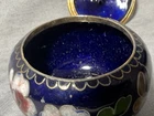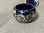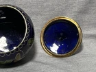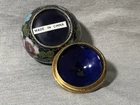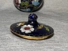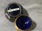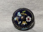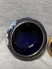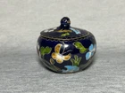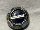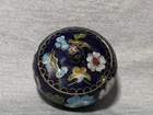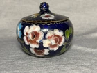 Vintage Chinese Small Trinket Jar or Dish with lid. Made of brass or metal, has dark blue enamel, floral cloisonne pattern. Measures approx. 2" tall x 2" diameter. Has sticker on the bottom "Made in China" Condition: Very good pre-owned condition. There are no chips, cracks,bends, breaks, or signs of repair. It will be carefully packaged for safe shipment. Comes from a smoke free environment. Please see ALL pictures, (along with zoom feature), as they are part of the description. Questions are welcome. Thank you for looking!