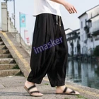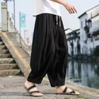 Chinese Ethnic Cotton Linen Loose Wide Leg Pants for Men
