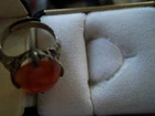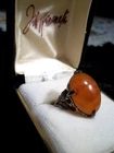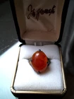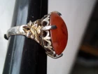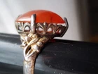 becoming harder and harder to find, a stunning old rare design you will love adding to your collection! fabulous dome oval old genuine north south east west mounting. will match your finest apple color oriental stones and motifs with this unusual oval cabochon rare old nsew mounting! comes in good antique condition not new not perfect some slight mount bending after a hundred years or so. one ring without box, common larger usable size 7 1/2 and adjustable by your jeweler only, too, silver, this is a nice ring. fabulous mount on this makes it as desirable as the color, rich glowy red orange with agate band area, this color is lucid, the 4 point n s e west style of this dome is a classical dream to wear if you can find it, matches the best jade and carved art pieces you will wear, and looks great with your art deco jadeite jades which were often mounted together for contrast and complimentary flair, large stone dome gorgeous. inventoryFLA1BOX IS INCLUDED IN PURCHASE.