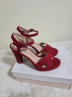 These red suede sandals are absolutely stunning! The block heel gives just the right height—comfortable yet chic. The padded insole makes them easy to wear all day, and the buckle detail adds a stylish touch. Perfect for dressing up or adding a pop of color to casual outfits. Love the quality and fit!