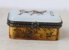 VTG 1960s Chinese, Asian Ceramic Trinket Box Floral Bird Design 8⅝"Lx 4"Hx 4⅜"D