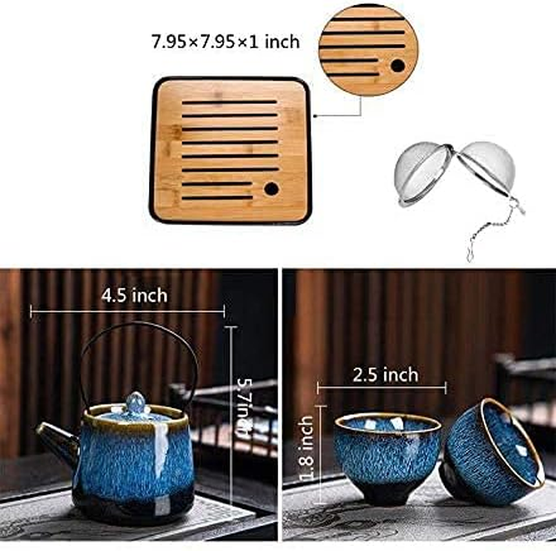 Store New Arrivals Add to Favorite View Feedback Chinese/Japanese Tea Set, Tea Sets for Women/,Gongfu/Porcelain Tea Set,Tea Tray and Filter Included,Suitable for Picnic and Ttravel Description Item Weight 2.29 pounds Item model number A0111 Package Dimensions 10.39 x 9.57 x 4.29 inches Teapot×1 ,Teacup×4,Saucer×1 ,Tea filter×1,Tea towel×1,Tea clip×1, bag×1 The teapot is designed for large capacity, use the handle to avoid hot hands. It is very suitable for or picnics. The outer packaging is small in size, and the inside can protect the tea set from damage. Because tea requires unique packaging and temperature to ensure quality, it is not recommended to use small tea tins. Product description Flamed Tea Set Since the glaze material contained other oxidised metal materials , changes occurred in the kiln , and various glaze colours , merged to form accidental suffused glazing.Because of the change of glaze and kiln under high temperature , each product is unique and can ' t be reproduced. Product List Teapot×1 ; 4.5×5.7 inch Teacup×4 ; 2.5×1.8 inch Saucer×1 ; 7.95×7.95×1 inch Tea filter×1 ; d=2.1inch Tea towel×1; 7.5×7.5 inch Tea clip×1; 7.08inch bag×1; 9.25×9.05×4.53 inch Features Tea filter Built-in tea strainer. Suitable for brewing black tea, Pu'er tea, oolong tea, green tea, etc.It can keep the tea leaves in the teapot and easy to clean. bag Outsourcing size is small, very suitable for . Gift giving It is very suitable as a gift, especially for girls and women. Production process Casting Hand-made preliminary model Trimming Trim with mold or by hand Glaz Artificial glazing Kiln High temperature firing ABOUT US We offer the best prices around on high quality products. Our E-store includes media such as books, movies, music and games while offering electronics, toys, sporting apparel, clothing, tools, general home, garden items and more. SHIPPING We are always working hard to ensure your package arrives as soon as possible. Please understand that some factors like weather, high postal traffic, and the performance of shipping companies are outside of our control. We offer free shipping to the lower 48 states and ship within 2 business days of payment, usually sooner. We do not accept P.O. Boxes. Please provide a physical address. RETURNS We offer a 30-Day Return Policy on items which you are not completely satisfied with. You have the option for a full-refund or an exchange of the item. No returns are available on items shipped outside of the USA. PAYMENT We accept PayPal. CONTACT US This page content is yet to come Please ad us to your favorite seller and visit again later Thank You