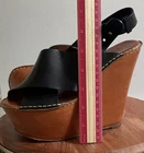 Chloe Black Leather Criss Cross Platform Wedge Sandals - Size 36 Amazing! These should be in a shoe museum. My daughter bought these from a friend,has had them in her room just on a shelf she never wore them. They are a smaller size and have flaws…..still super cool! Please see pictures for further condition details. .