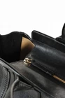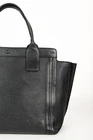 Circa 2014, the Mini East-West tote from Chloe is crafted in a Black grained leather, and features gold-tone hardware, two top handles, and tonal striped detailing. The top zip closure opens to a beige canvas-lined interior containing a single snap-closure pocket. Condition: Great; light scratching on exterior, light cracking on handle edges, light corner rub, light hardware discolouration, light marking on interior. Comes with original tag, authenticity card, care card, and dustbag. Approximate measurements: Height: 9.75" (25 cm) Width: 11.5" (29 cm) Depth: 7.75" (20 cm) Handle Drop: 5.25" (13 cm) Composition: Garment: 100% sheepskin. Coating: 75% genuine calfskin, 25% sheepskin. Lining: 100% cotton.