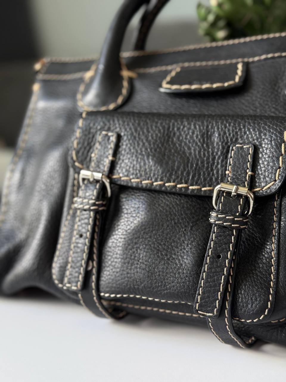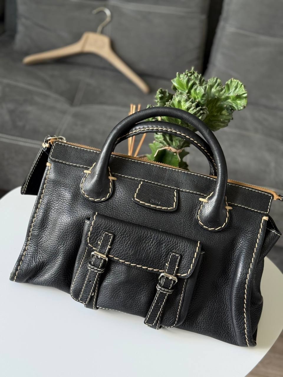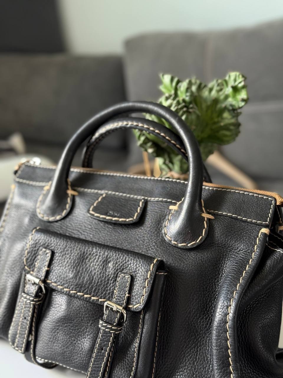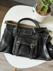 The Chloe Edith Hand Bag in black leather with brown knit accents is a stylish and versatile accessory for women. With a rectangular shape, zip closure, and double black handles, this medium-sized tote features silver hardware and a pebbled finish. The bag is perfect for various occasions including travel, weddings, parties, casual outings, formal events, workwear, and business meetings. Made in Italy, this handbag exudes a classic yet trendy vibe with a touch of luxury from the Chloé brand.