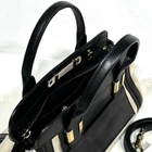 Chloe Handbag Canvas Leather Tote Bag Navy Blue Embossed Logo Shoulder Description Chloe Nano Alice Bicolor Chloe Alice handbag shoulder 2way Chloe Alice Little Alice Chloe Bag/Chloe Bag/Chloe Bag Chloe Shoulder Bag 2way Chloe crossbody bag Chloe semi-shoulder bag Chloe bag Chloe This bag is made from sturdy genuine leather, and its two-tone black and beige color is cute, making it an elegant and lovely item. This is the smallest model in the Alice series, so it's adorable and can be used in your preferred style as a shoulder bag, handbag, crossbody bag, or shoulder bag. *The whitish parts in the photo are due to light reflection from the shooting environment and are not peeling or discoloration. 【situation】 (outside) Front: No notable damage Back: No notable damage Corners: No damage Sides: No damage Handles: No damage Zipper: Opens and closes smoothly Shoulder: Almost unused, so no damage Metal fittings: No damage *Please understand that small wrinkles and blood vessels (line-like patterns) are due to the characteristics of genuine leather and are proof that it is genuine leather. (inside) Feeling of use: None Dirt: None Deterioration: None Tears/Frays: None Smell: No irritating smell *The interior and exterior are disinfected, cleaned, and treated with oil specifically for genuine leather. 【color】 black /Black x Beige two-tone Gold hardware 【material】 Genuine leather 【size】 External Dimensions: W9.84-11.81 inches x H6.30 inches x D6.30 inches Handle Length: 11.81 inches Shoulder Strap Length: 39.76 inches 【specification】 Nano model/small two-tone handbag. Shoulder bag/crossbody/shoulder compatible. Zipper closure. Open pocket on the outside front. Open inside. Pocket 1 【accessories】 Shoulder strap, dust bag, photo card Shipping Shipping from Japan with Tracking Number & Insurance. We usually ship out your order within 10working days after receiving your payment. Payment Please follow the payment method displayed on your ebay. International Buyers - Please Note: Import duties, taxes, and charges are not included in the item price or shipping cost. These charges are the buyer's responsibility. Please check with your country's customs office to determine what these additional costs will be prior to bidding or buying.