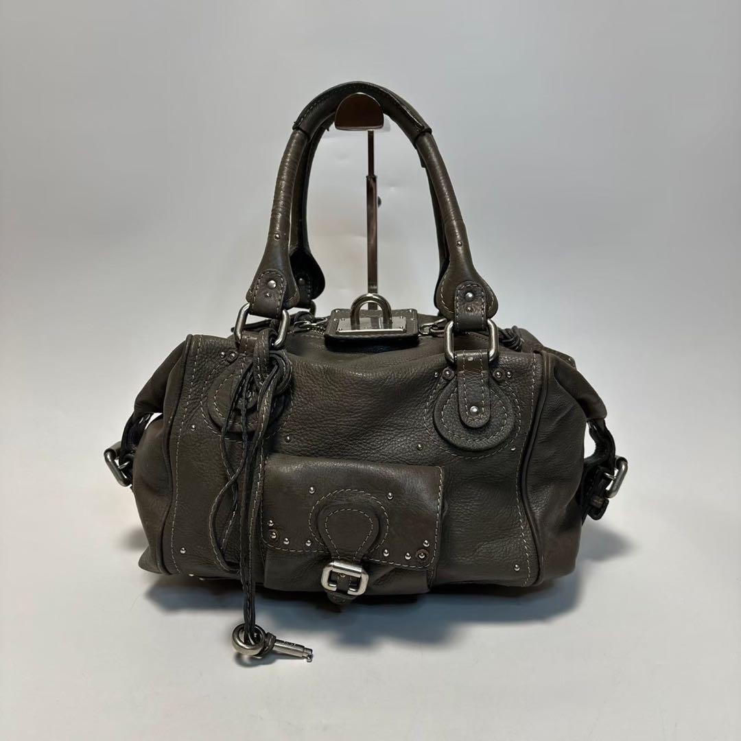 Chloe Paddington leather tote handbag with gold hardware and clochette. The size is approximately 8.66 inches in height, 11.02 inches in width, and 5.91 inches in depth. The handle height is 8.27 inches. There are some scuffs, but the condition is generally good and it can be used for a long time. The color is gray. The material is leather. No accessories are included. I promise fast shipping via FedEx or DHL as soon as possible! Import duties, taxes and charges are not included in the item price or shipping charges. These charges are the buyer’s responsibility. These charges are normally collected by the delivering freight (shipping) company or when you pick the item up - do not confuse them for additional shipping charges.