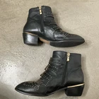 Chloé Susanna Studded Leather Ankle Boots Zipper closure on inside Leather Studded Insoles have been refurbished Tips of boots show wear, see photo Color: Black Hardware: Gold Heel height: 1.75” Excellent Condition