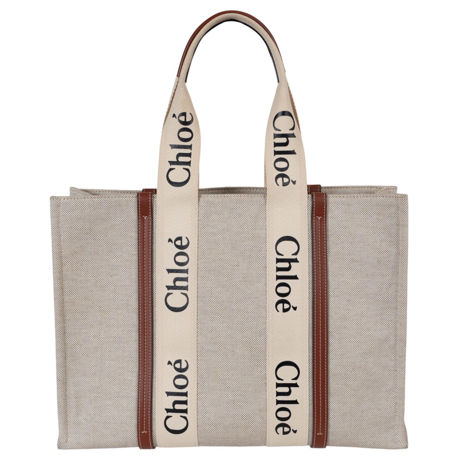 Welcome to LUX l Authentic Designer Consignment Rämistrasse 25, 8001 Zürich, Switzerland I Tue-Fri 11-18:30 & Sat 11-16:00 By bidding on our auctions you are agreeing to our Terms and Conditions below. All items come with authenticity guarantee! ------------------------------------------------------------------------------------------------------------------------------------------ Product Description: This 100% authentic Chloé Woody Large tote in white oatmeal canvas blends effortless elegance with everyday practicality. Accented with brown shiny leather trims and signature black and white logo ribbon handles, it embodies the brand’s modern yet timeless aesthetic. The open-top design offers easy access to essentials, while the spacious interior features a flat open pocket against the back for added organization. A perfect companion for both city life and weekend getaways. Has been carried and shows very faint marks on the bottom and a darker spot and the righ edge. Overall in excellent condition. Measurements Model CHC22AS382I2690U Height 33cm (12.9in) Width 45cm (17.6in) Depth 13cm (5.1in) Drop of the Handle 25cm (9.8in) All our listings include only the listed item unless otherwise specified in the description above - Price does not include import duties & taxes - check your countries import laws prior purchase ------------------------------------------------------------------------------------------------------------------------------------------ Terms & Conditions Luxury-Shops is not affiliated with any of the name-brand items we offer for sale. Warranties and Liabilites: Luxury-Shops declines all responsibility and cannot be held liable for any damages caused by the use of a specific garment. We also cannot be held responsible for the quality of an item (we are not the manufacturer) or any damages resulting from a manufacturing defect. No warranties of any kind are given or implied. Condition of Merchandise: Luxury-Shops offers for sale luxury top-quality products. We fully disclose the condition of each item. In the description of each product, Luxury-Shops will specify the conditions if different from the standards set by the market (Required disclosure of prior use) The main characteristics of products are shown in great detail (through numerous photographs and in-depth descriptions). The products offered for sale MAY NOT correspond to the real garments in terms of image and color because of the Internet Browser or Monitor used (color calibration). Luxury-Shops disclaims all responsibility. Every used item offered by Luxury-Shops has been cleaned and restored to the best possible condition unless noted otherwise. Every used or vintage handbag has been polished and refinished. Your purchases will be sent to you ready to be used or worn. Please be aware that vintage items may be delicate and may not be as resilient as a brand-new item. Please take appropriate care when using a vintage item. Damage to items after receipt or use by customers is not the responsibility of Luxury-Shops. Luxury-Shops is a reseller of authentic designer and vintage merchandise. We are not an authorised dealer and are not affiliated with the brands we sell on our site. Store-new designer items are only available from an authorised dealer or the actual store. Once the item leaves the authorised dealer with a customer, the item is considered pre-owned. However, items can be pre-owned and in new condition - that is, never used by the owner. Below are the definitions of the descriptions we use. NEW : in new condition, that is, never used . This means the item may have been purchased by us from an authorized dealer or a store. New items may also be pre-owned, that is, purchased by one of our consignors and never used. These items may have minor signs of handling as would any item available at an authorized dealer or boutique given that customers would reasonably handle an item when trying it on or examining it for purchase. USED: the item has been carried or worn and may be in any of the conditions described below. PRISTINE/VIRTUALLY NEW : Appears to have been used only a handful of time and is nearly new in condition. May have very slight signs of having been used upon close inspection. EXCELLENT : Used and in top condition. There may be faint signs of wear, slight scratches, marks or nicks which are not particularly noticeable and will not affect the use or wear of the item. Our descriptions and photographs will clearly indicate the condition of the item. GOOD : Used, may be an older or well-loved item. There may be slightly more noticeable signs of wear, scratches or marks. These will not affect the wear or use of the item. Our descriptions and photographs will clearly indicate the condition of the item. VINTAGE : Typically around 20 to just under 100 years old. Our vintage items are carefully examined and selected. Most are gently or rarely used, meticulously stored or cared for and will come to you in a perfectly usable condition. However, these are unique items which may be of a finer and more delicate nature than brand-new items so please be sensitive to this and have reasonable expectations of their resilience. We do not make allowances for unreasonable expectations in the condition of our items. Product Descriptions: We make every effort to display the products featured on our web site as accurately as possible, using a large array of unaltered digital photographs and detailed descriptions. Our examination and assessment of merchandise is meticulous and conducted with great attention to detail. Our expertise and product knowledge comes from many years of experience with authentic designer and vintage items. We make as much effort as is humanly possible to disclose all relevant information required for you to be completely confident about your purchase. However, the display and colour capabilities of your computer monitor could affect the colours you see on the screen and these may differ from the