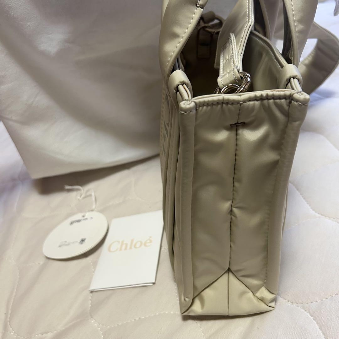 This Chloe Woody Nylon Tote is a chic and practical must-have! The dusty ivory color is elegant, and the durable nylon makes it perfect for daily use. Even though it was used once, it looks brand new—no scratches or dirt. Lightweight yet spacious, it’s great for work or errands. Comes with a dust bag for safe storage. A fantastic deal for a high-end designer piece!