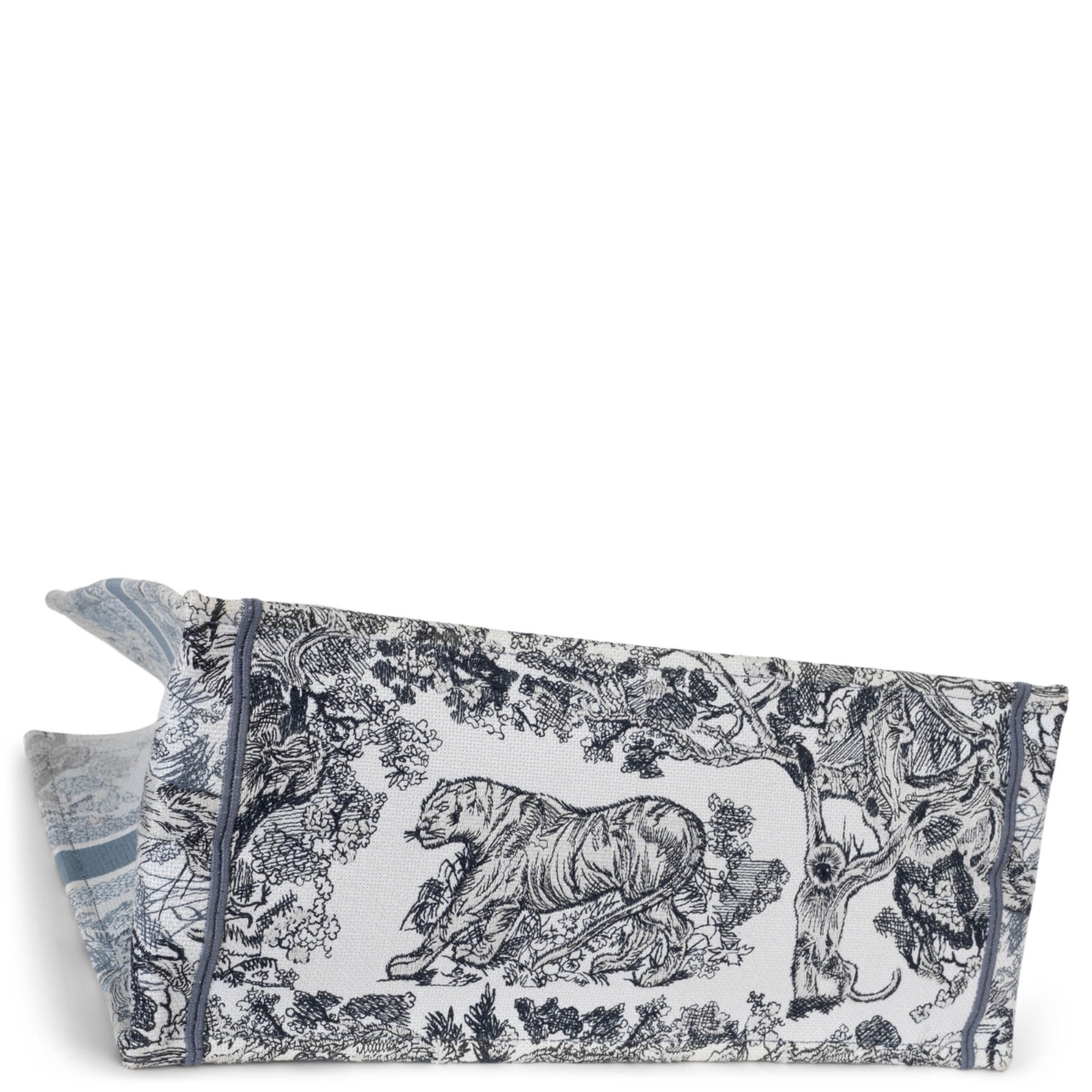 Welcome to LUX l Authentic Designer Consignment Rämistrasse 25, 8001 Zürich, Switzerland I Tue-Fri 11-18:30 & Sat 11-16:00 By bidding on our auctions you are agreeing to our Terms and Conditions below. All items come with authenticity guarantee! ------------------------------------------------------------------------------------------------------------------------------------------ Product Description: This 100% authentic Christian Dior Large Book Tote is finely crafted from embroidered canvas featuring a toile de Jouy pattern in gradient blue and grey. Designed for both elegance and practicality, it showcases matching multicolor canvas rolled handles and the Christian Dior logo embroidered across the front. The tote opens to a spacious fabric interior, making it the perfect statement bag for everyday luxury. Has been carried and handles have faded, additionally theres faint glue marks on the bottom edges and a tiny one on the top edge. Overall in very good condition. 2021 Dioriviera Measurements Height 34cm (13.3in) Width 42cm (16.4in) Depth 18cm (7in) Drop of the Handle 17cm (6.6in) Blindstamp 50-MA-0281 All our listings include only the listed item unless otherwise specified in the description above - Price does not include import duties & taxes - check your countries import laws prior purchase ------------------------------------------------------------------------------------------------------------------------------------------ Terms & Conditions Luxury-Shops is not affiliated with any of the name-brand items we offer for sale. Warranties and Liabilites: Luxury-Shops declines all responsibility and cannot be held liable for any damages caused by the use of a specific garment. We also cannot be held responsible for the quality of an item (we are not the manufacturer) or any damages resulting from a manufacturing defect. No warranties of any kind are given or implied. Condition of Merchandise: Luxury-Shops offers for sale luxury top-quality products. We fully disclose the condition of each item. In the description of each product, Luxury-Shops will specify the conditions if different from the standards set by the market (Required disclosure of prior use) The main characteristics of products are shown in great detail (through numerous photographs and in-depth descriptions). The products offered for sale MAY NOT correspond to the real garments in terms of image and color because of the Internet Browser or Monitor used (color calibration). Luxury-Shops disclaims all responsibility. Every used item offered by Luxury-Shops has been cleaned and restored to the best possible condition unless noted otherwise. Every used or vintage handbag has been polished and refinished. Your purchases will be sent to you ready to be used or worn. Please be aware that vintage items may be delicate and may not be as resilient as a brand-new item. Please take appropriate care when using a vintage item. Damage to items after receipt or use by customers is not the responsibility of Luxury-Shops. Luxury-Shops is a reseller of authentic designer and vintage merchandise. We are not an authorised dealer and are not affiliated with the brands we sell on our site. Store-new designer items are only available from an authorised dealer or the actual store. Once the item leaves the authorised dealer with a customer, the item is considered pre-owned. However, items can be pre-owned and in new condition - that is, never used by the owner. Below are the definitions of the descriptions we use. NEW : in new condition, that is, never used . This means the item may have been purchased by us from an authorized dealer or a store. New items may also be pre-owned, that is, purchased by one of our consignors and never used. These items may have minor signs of handling as would any item available at an authorized dealer or boutique given that customers would reasonably handle an item when trying it on or examining it for purchase. USED: the item has been carried or worn and may be in any of the conditions described below. PRISTINE/VIRTUALLY NEW : Appears to have been used only a handful of time and is nearly new in condition. May have very slight signs of having been used upon close inspection. EXCELLENT : Used and in top condition. There may be faint signs of wear, slight scratches, marks or nicks which are not particularly noticeable and will not affect the use or wear of the item. Our descriptions and photographs will clearly indicate the condition of the item. GOOD : Used, may be an older or well-loved item. There may be slightly more noticeable signs of wear, scratches or marks. These will not affect the wear or use of the item. Our descriptions and photographs will clearly indicate the condition of the item. VINTAGE : Typically around 20 to just under 100 years old. Our vintage items are carefully examined and selected. Most are gently or rarely used, meticulously stored or cared for and will come to you in a perfectly usable condition. However, these are unique items which may be of a finer and more delicate nature than brand-new items so please be sensitive to this and have reasonable expectations of their resilience. We do not make allowances for unreasonable expectations in the condition of our items. Product Descriptions: We make every effort to display the products featured on our web site as accurately as possible, using a large array of unaltered digital photographs and detailed descriptions. Our examination and assessment of merchandise is meticulous and conducted with great attention to detail. Our expertise and product knowledge comes from many years of experience with authentic designer and vintage items. We make as much effort as is humanly possible to disclose all relevant information required for you to be completely confident about your purchase. However, the display and colour capabilities of your computer monitor could affect the colours you see on the screen and these may differ from the actual product. Lux