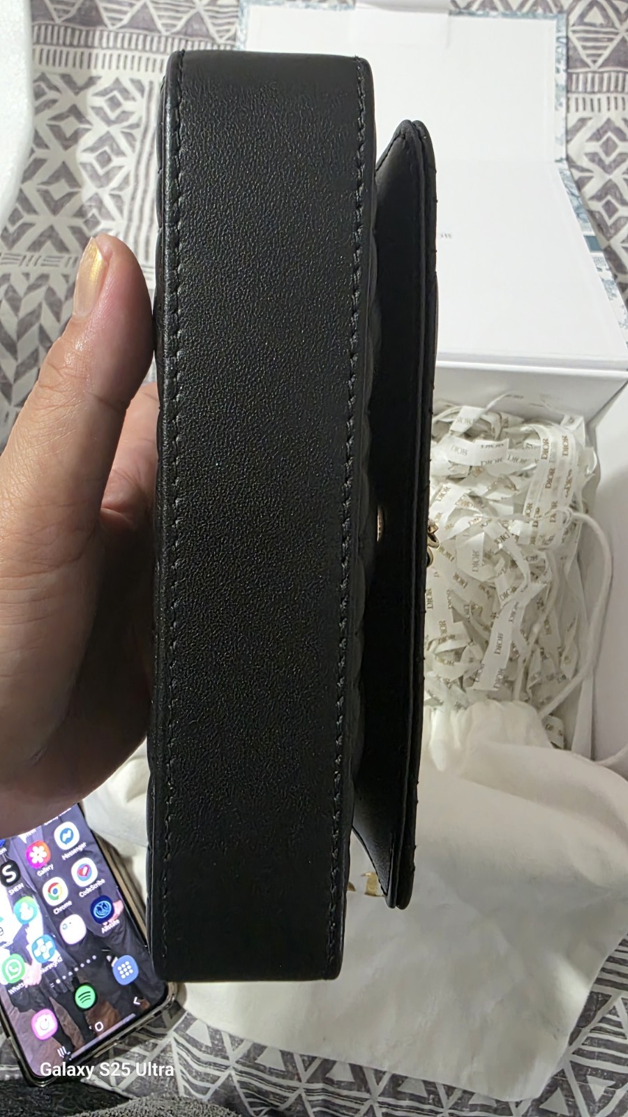 The Christian Dior AUTHENTIC Talk Phone Pouch Black Cannage Leather Crossbody Bag is a luxurious and stylish accessory perfect for both men and women. Made from high-quality leather, this bag features a zip closure and an adjustable leather strap for convenience. The classic black color and Cannage leather design add a touch of sophistication to any outfit. Crafted by the renowned brand Dior, this 2020-2029 model is a timeless piece that exudes elegance and functionality.