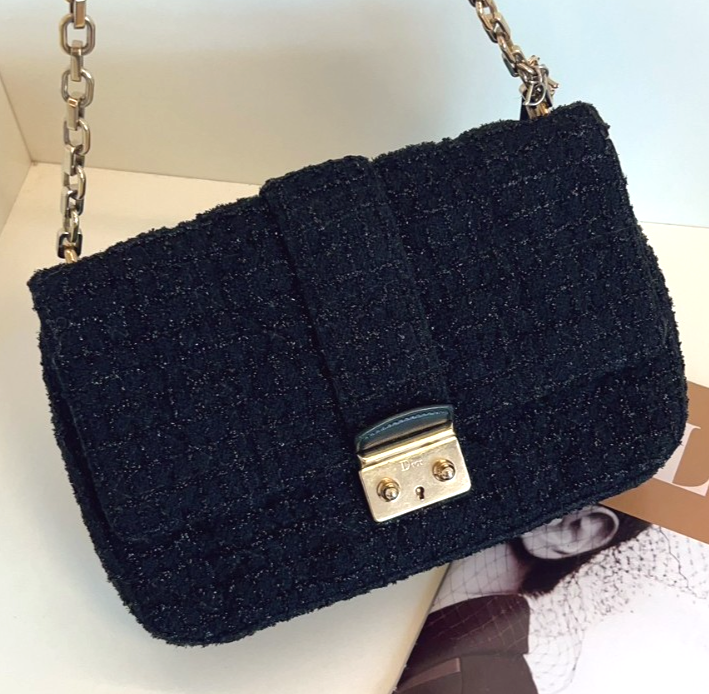 $ 1319.48Dior Lady Silk Handbag Black Silver Rhinestone 2-Way Crossbody Bag