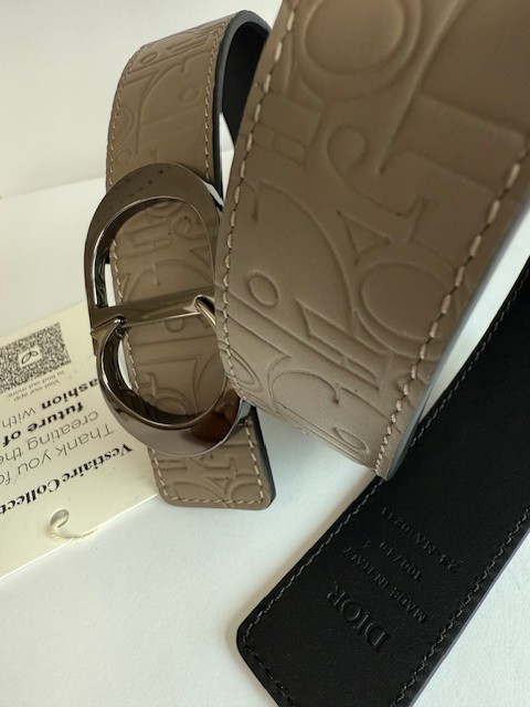 Christian Dior men’s Gray leather monogram belt Size: 100 cm (fits approx. 34-36″ waist) Material: Premium leather with Dior’s signature monogram detailing Condition: Brand new, never worn, excellent condition Authentication: Verified by Vestiaire Collective Proof: Original Vestiaire Collective authentication tag attached All brand names and trademarks used for identification purposes Authenticity guaranteed