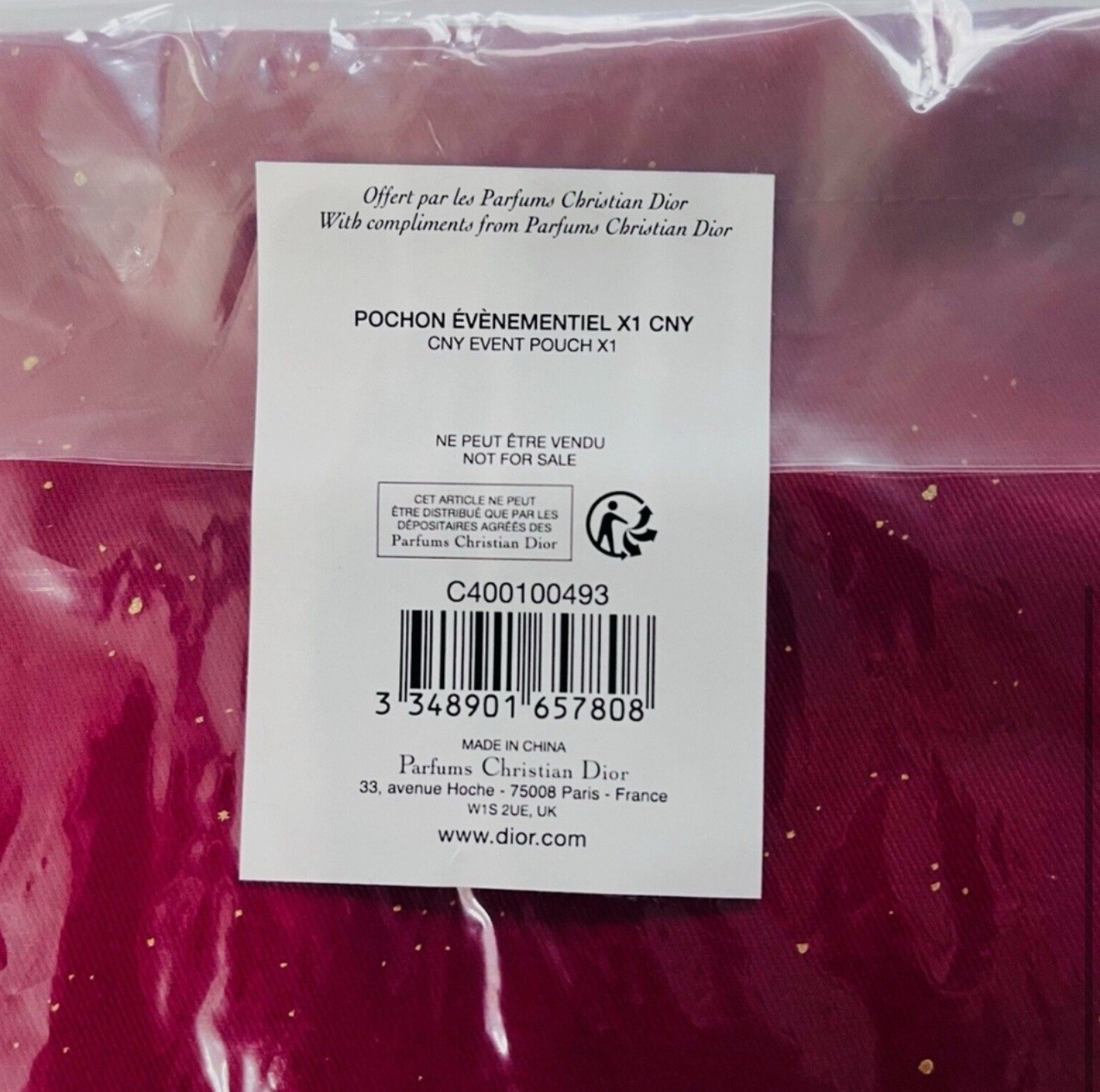 🎊 Christian Dior Red Constellations Drawstring Bag – 2023 Chinese Lunar New Year – Limited Edition 🎊 Celebrate elegance and tradition with this Limited Edition Dior Red Constellations Drawstring Pouch, released in honor of the 2023 Chinese Lunar New Year. Featuring a stunning red and gold celestial design, this collectible pouch is both beautiful and functional — a true keepsake for Dior lovers. 🛍️ Product Details: • Brand: Christian Dior • Style: Drawstring Pouch / Gift Bag • Design: Red with Gold Constellations Print • Edition: 2023 Lunar New Year Limited Edition • Material: Soft fabric (cotton blend) • Size: Approx. 9 x 6.5 inches (flat) • Condition: Brand New – Never Used • Authenticity: Guaranteed 100% 🌟 Features: • Elegant red and gold celestial theme • Dior logo and zodiac-inspired constellation print • Soft drawstring closure – perfect for storing accessories, cosmetics, or gifts • Rare limited release – not sold in stores • Great collector’s item or luxury packaging piece 🎁 Perfect For: • Dior collectors • Lunar New Year gifts • Cosmetic pouch or travel accessory • Display, gifting, or resale presentation 📦 Ships quickly & securely – from a smoke-free environment. Trusted seller.