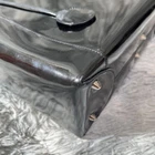 Dior Maris Pearl handbag in black patent leather. There are some scratches and scuffs. The bag includes a storage bag, card, and strap. The height is approximately 9.06 inches, the width is approximately 11.22 inches, the depth is approximately 4.13 inches, and the handle length is approximately 18.11 inches. I promise fast shipping via FedEx or DHL as soon as possible! Import duties, taxes and charges are not included in the item price or shipping charges. These charges are the buyer’s responsibility. These charges are normally collected by the delivering freight (shipping) company or when you pick the item up - do not confuse them for additional shipping charges.