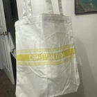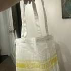 The New Christian Dior Limited VIP canvas Bag is a stylish and unique tote bag perfect for any occasion. Made of durable canvas and cotton materials, this medium-sized bag features double cotton handles for easy carrying. The exterior design add a touch of luxury. This limited edition bag in a vibrant yellow color showcases the iconic Dior brand, making it a must-have for fashion-forward women looking for a sophisticated and eye-catching accessory.