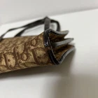 Christian Dior mini handbag in camel color. Size approximately 7.48 inches in height, 11.81 inches in width, and 1.97 inches in depth. Features a zipper closure and two interior open pockets. Made of canvas and leather. This is a used item with corner scuffing, cracking on the handle, peeling of the metal plating, and minor stains on the inside. I promise fast shipping via FedEx or DHL as soon as possible! Import duties, taxes and charges are not included in the item price or shipping charges. These charges are the buyer’s responsibility. These charges are normally collected by the delivering freight (shipping) company or when you pick the item up - do not confuse them for additional shipping charges.