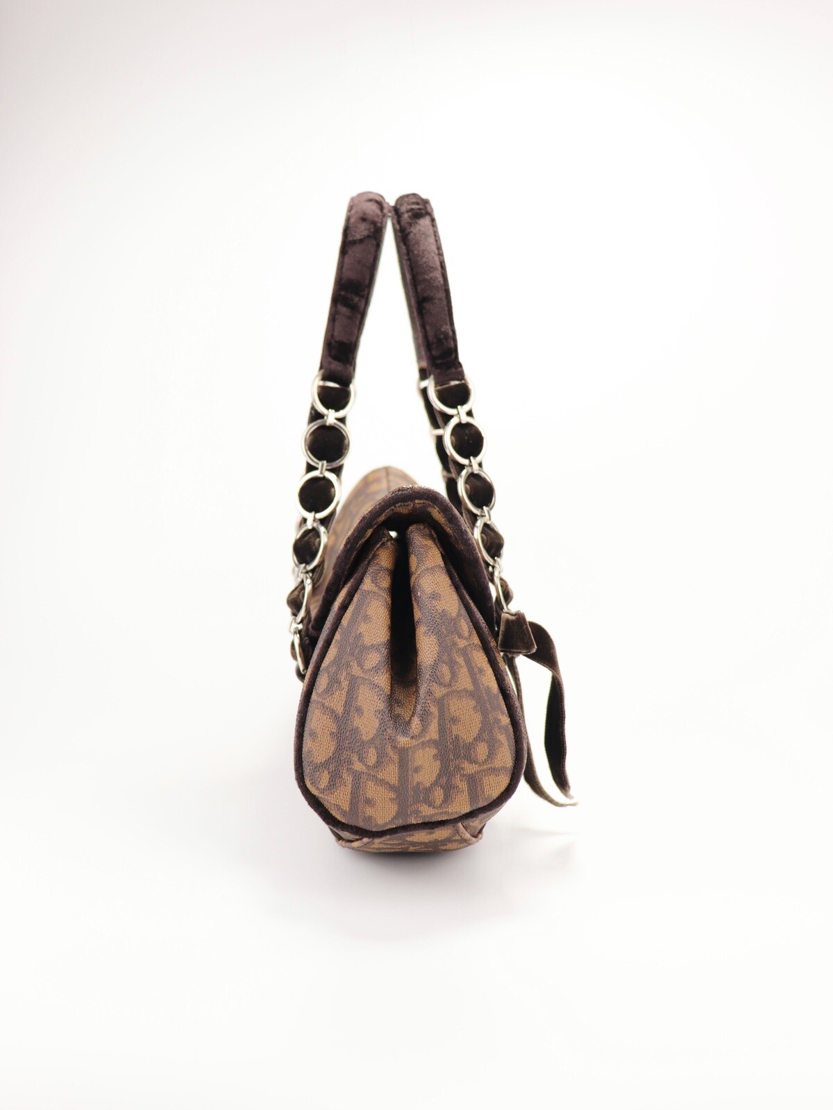 Christian Dior Romantique Trotter Mini Handbag Brown Condition: 9/10 - Virtually perfect exterior - Slight chipping at the leather handle - Minor tear inside the bag (as pictured) - Immaculate interior Dimensions: W - 25 cm D - 7 cm H - 16 cm Inclusions: Sold as is.