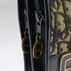 Christian Dior Trotter Canvas Shoulder Bag in Beige Brown Gold Auth 98330