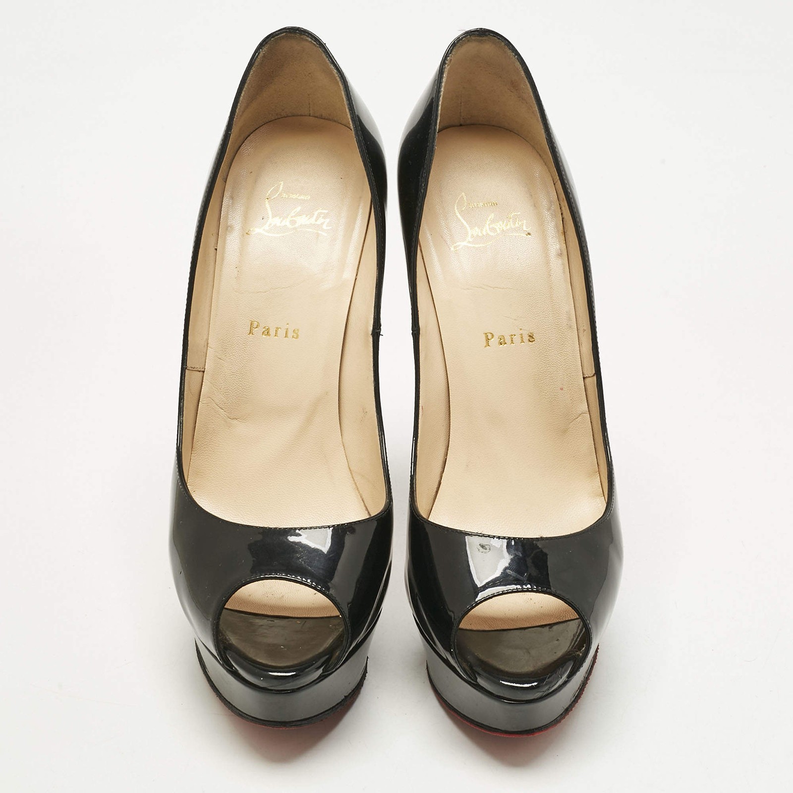 Stand out from the crowd with this gorgeous pair of Louboutins that exude high fashion with class. Crafted from patent leather, this is a creation from their Lady Peep collection. It features a classic black shade with peep toes and an architectural shape. Completed with leather insoles, stiletto heels, and signature red lacquered soles, these shoes are elegant.Certified by The Luxury Closet - This item has gone through a detailed authentication process overseen by our experts. We offer a lifetime guarantee of authenticity on all our items. Import duties, taxes and charges are not included in the item price. These charges are the buyers responsibility. Please check with your country’s customs office to determine what these additional cost will be prior to buying. Our eBay Store About Us Contact Us Add to Favorite Sellers Christian Louboutin Black Patent Leather Lady Peep Toe Platform Pumps Size 40.5 $476.3 Stand out from the crowd with this gorgeous pair of Louboutins that exude high fashion with class. Crafted from patent leather, this is a creation from their Lady Peep collection. It features a classic black shade with peep toes and an architectural shape. Completed with leather insoles, stiletto heels, and signature red lacquered soles, these shoes are elegant. Product Details Brand Color Black Dimensions Material Patent Leather Size 40.5 Outsole Width Outsole Length Heel Height Includes Certified by The Luxury Closet This item has gone through a detailed authentication process overseen by our experts. We offer a lifetime guarantee of authenticity on all our items. How We Check The in-house team of experts at The Luxury Closet is highly trained to verify the authenticity and the condition of the luxury products. They ensure that only 100% authentic items are put on sale.The evaluation process is unique with its own mix of assessment criteria and differs according to the category. Each item is evaluated based on the following combination of hallmarks, hardware, stitching, symmetry, material, craftsmanship, stamping, codes, hologram stickers, and packaging. Our authenticators also check if the items have been modified or amended (e.g., aftermarket diamonds, replaced batteries, repaired bags, etc.) International Buyers Import duties, taxes and charges are not included in the item price. These charges are the buyers responsibility. Please check with your country’s customs office to determine what these additional cost will be prior to buying.