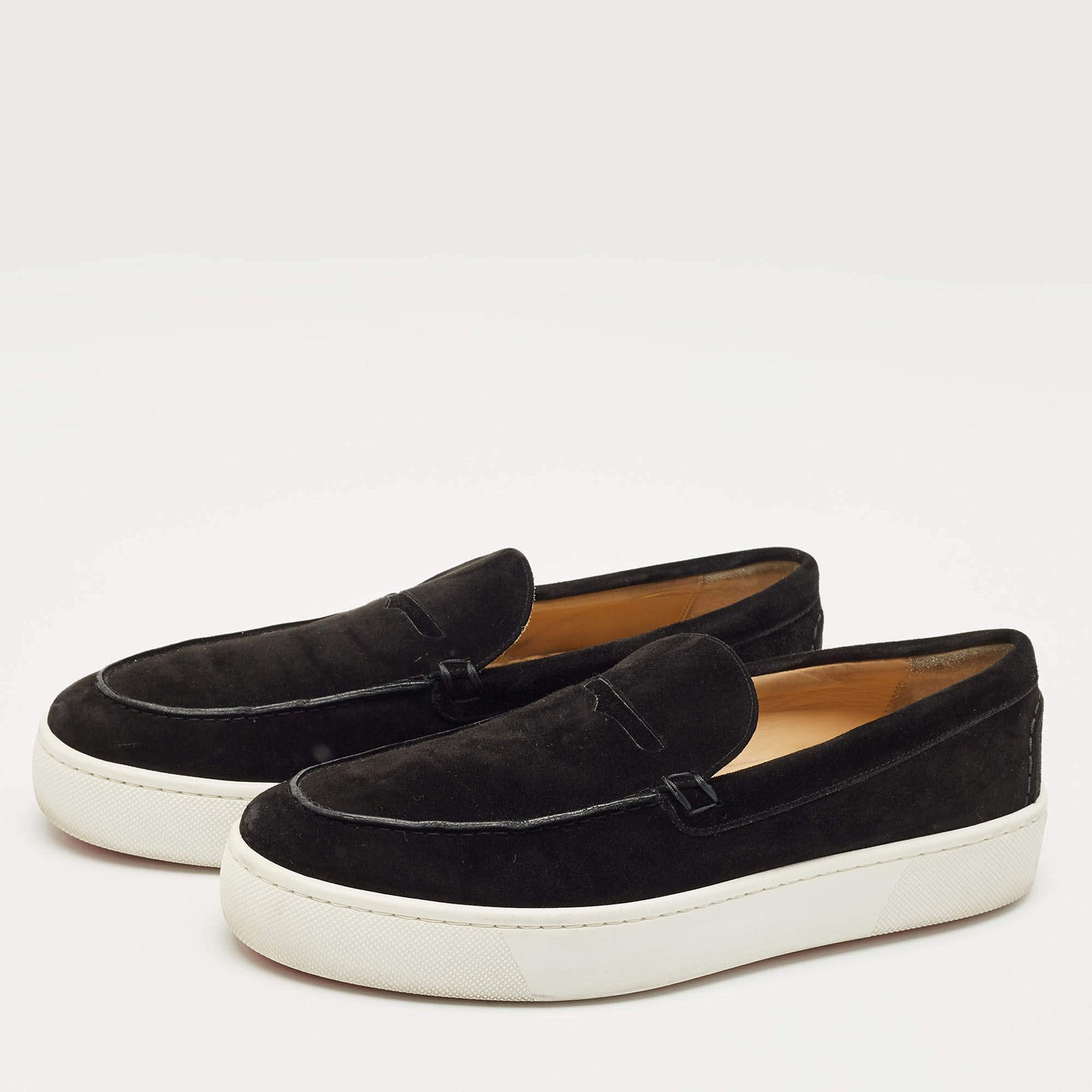 Our eBay Store About Us Contact Us Add to Favorite Sellers Christian Louboutin Black Suede Varsiboat Slip On Sneakers Size 455 Christian Louboutin blends sporty and sleek with these slip-on sneakers in soft black suede. Finished with signature red soles, they offer a luxurious twist on casual streetwear. Product Details Brand Christian Louboutin Color Black Includes Original Dustbag Outsole Length 31 cm Outsole Width 11 cm Size 45.5 Certified by The Luxury Closet This item has gone through a detailed authentication process overseen by our experts. We offer a lifetime guarantee of authenticity on all our items. How We Check The in-house team of experts at The Luxury Closet is highly trained to verify the authenticity and the condition of the luxury products. They ensure that only 100% authentic items are put on sale.The evaluation process is unique with its own mix of assessment criteria and differs according to the category. Each item is evaluated based on the following combination of hallmarks, hardware, stitching, symmetry, material, craftsmanship, stamping, codes, hologram stickers, and packaging. Our authenticators also check if the items have been modified or amended (e.g., aftermarket diamonds, replaced batteries, repaired bags, etc.) International Buyers Import duties, taxes and charges are not included in the item price. These charges are the buyers responsibility. Please check with your country’s customs office to determine what these additional cost will be prior to buying.