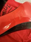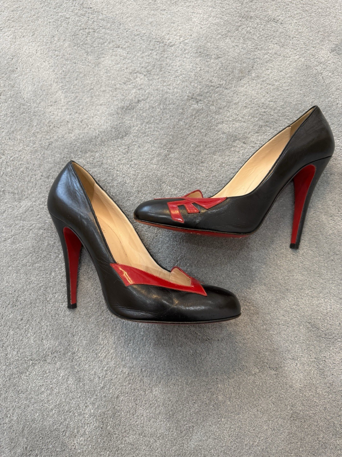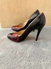 Christian Louboutin Black/Red Color block LOVE leather 100mm (3.9in) pumps in size 9.5/40. Light wear soles and small scratch on letter O shown in picture. Comes with dust bag.