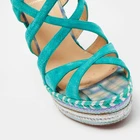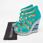 Our eBay Store About Us Contact Us Add to Favorite Sellers Christian Louboutin Green Suede Caged Espadrille Tosca Wedge Platform Sandals Size 39 These sandals from Christian Louboutin have been designed to lift your style. They flaunt green suede straps and rear zippers to secure your feet perfectly and are elevated on 15cm wedge heels. Pair them with a maxi dress for a fashionable brunch outing and get set to win a lot of compliments. Product Details Brand Christian Louboutin Color Green Heel Height 15 cm Material Fabric, Suede Size 39 Certified by The Luxury Closet This item has gone through a detailed authentication process overseen by our experts. We offer a lifetime guarantee of authenticity on all our items. How We Check The in-house team of experts at The Luxury Closet is highly trained to verify the authenticity and the condition of the luxury products. They ensure that only 100% authentic items are put on sale.The evaluation process is unique with its own mix of assessment criteria and differs according to the category. Each item is evaluated based on the following combination of hallmarks, hardware, stitching, symmetry, material, craftsmanship, stamping, codes, hologram stickers, and packaging. Our authenticators also check if the items have been modified or amended (e.g., aftermarket diamonds, replaced batteries, repaired bags, etc.) International Buyers Import duties, taxes and charges are not included in the item price. These charges are the buyers responsibility. Please check with your country’s customs office to determine what these additional cost will be prior to buying.